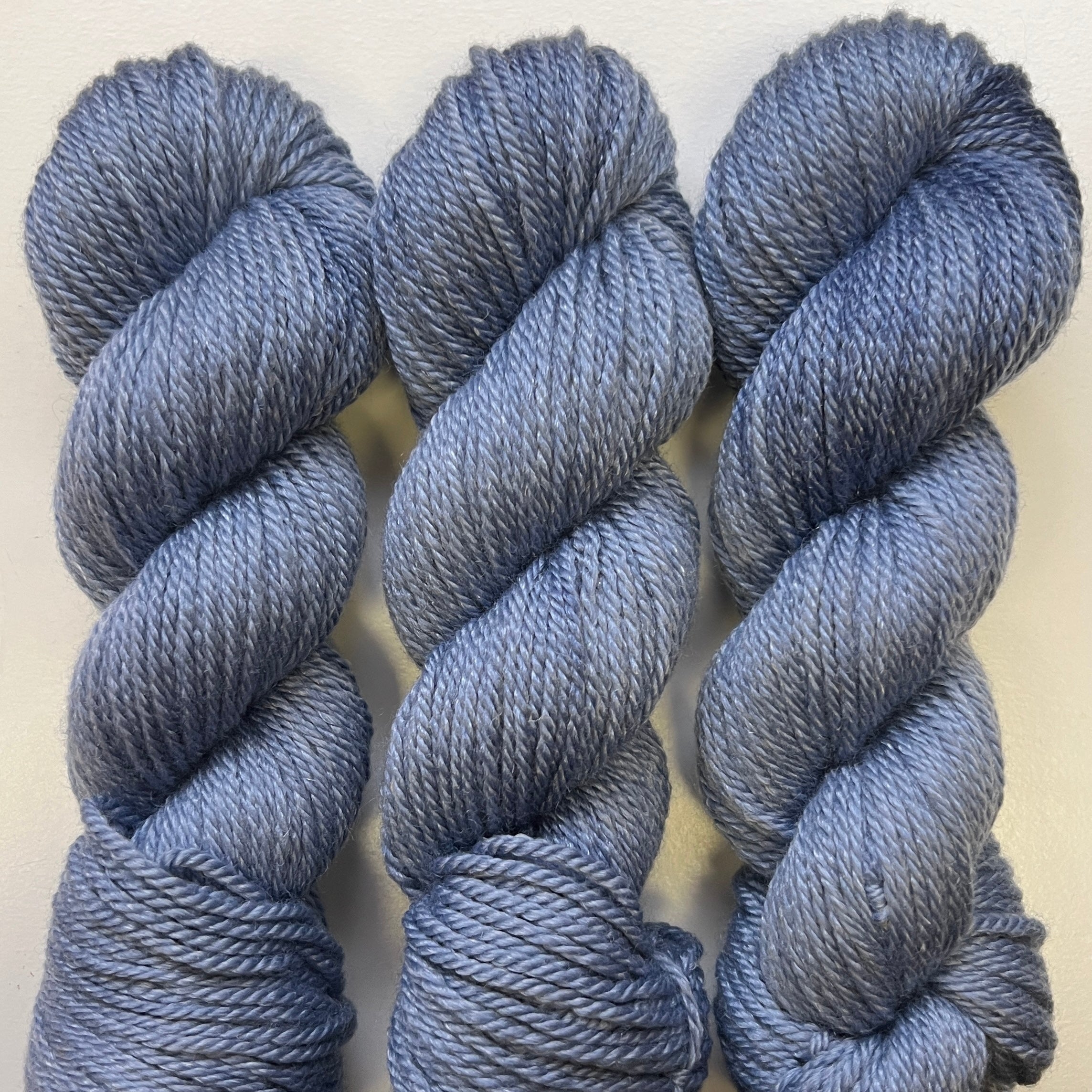 Handdyed yarn in a wonderful soft merino blend in cool blue tones.