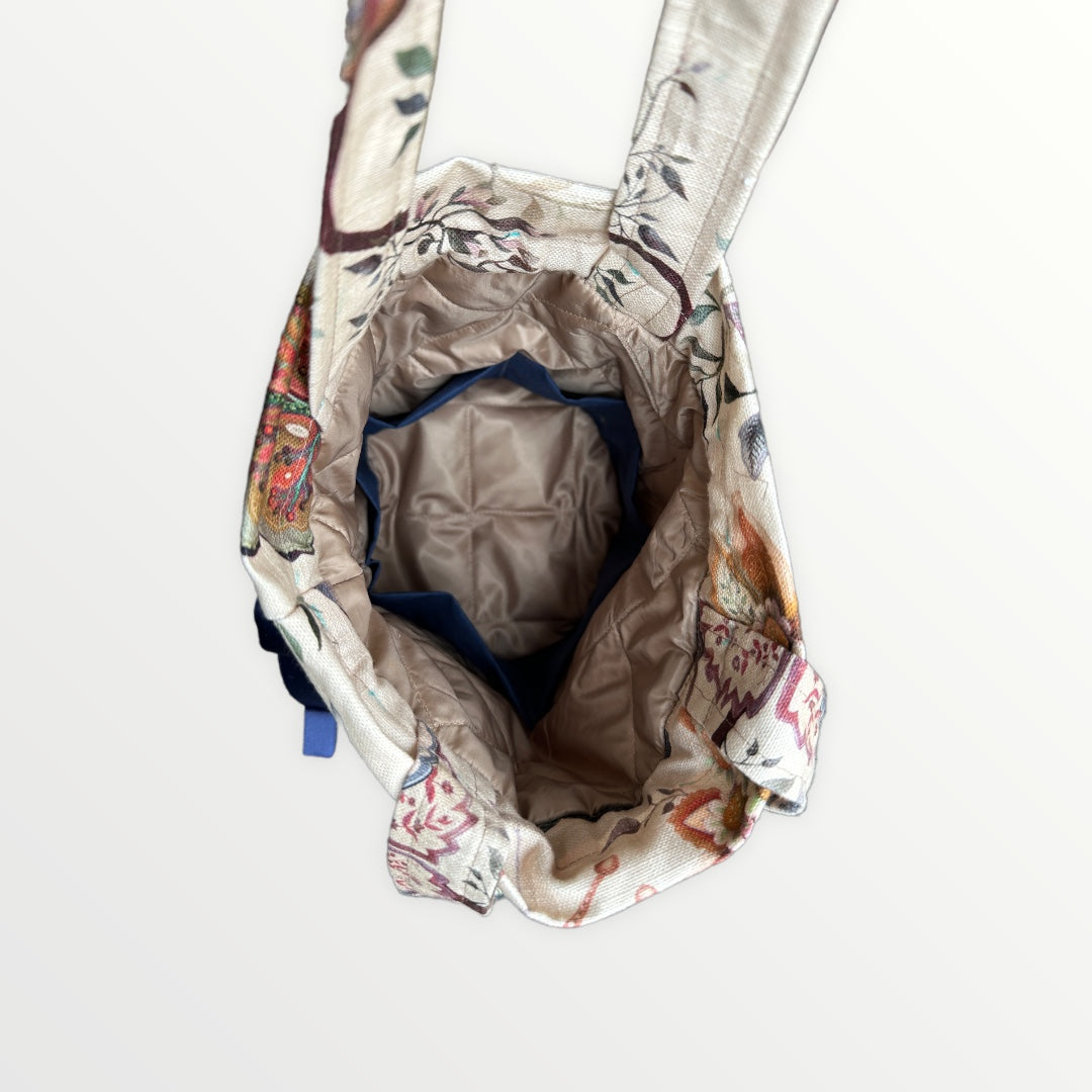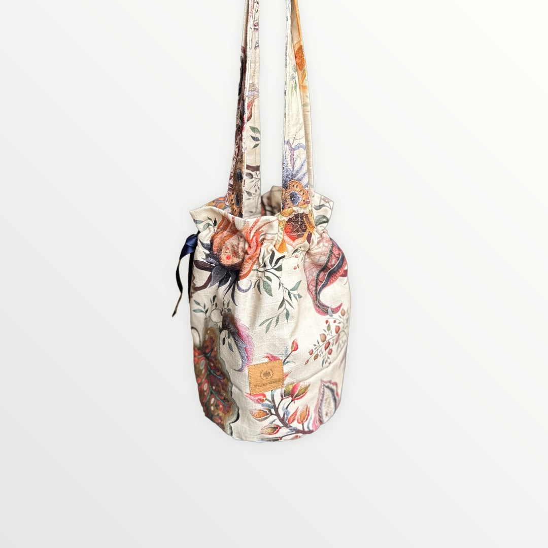 Project bag in woven cotton with wild flowers on a beige base. The bag has internal pockets so you can keep small things in order.