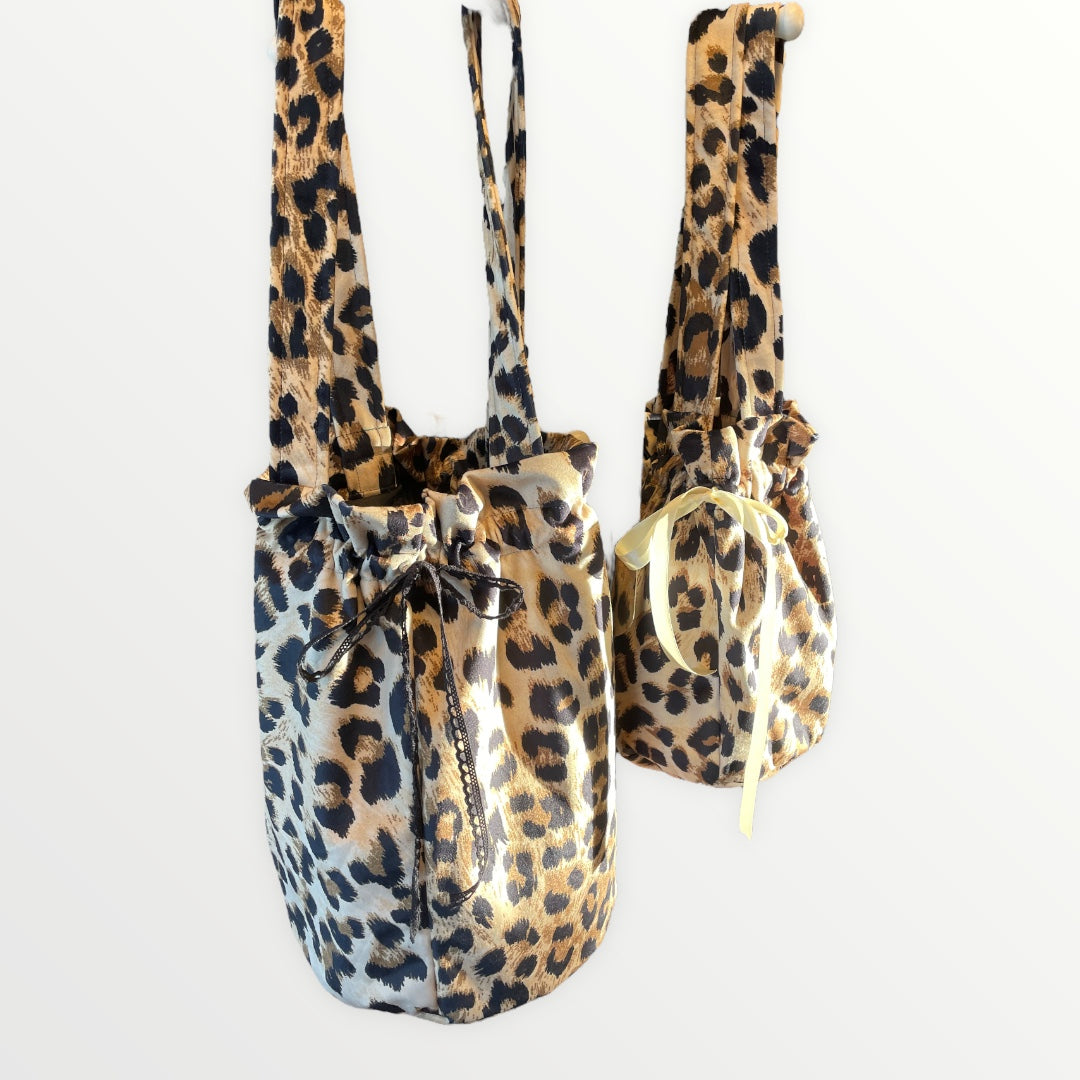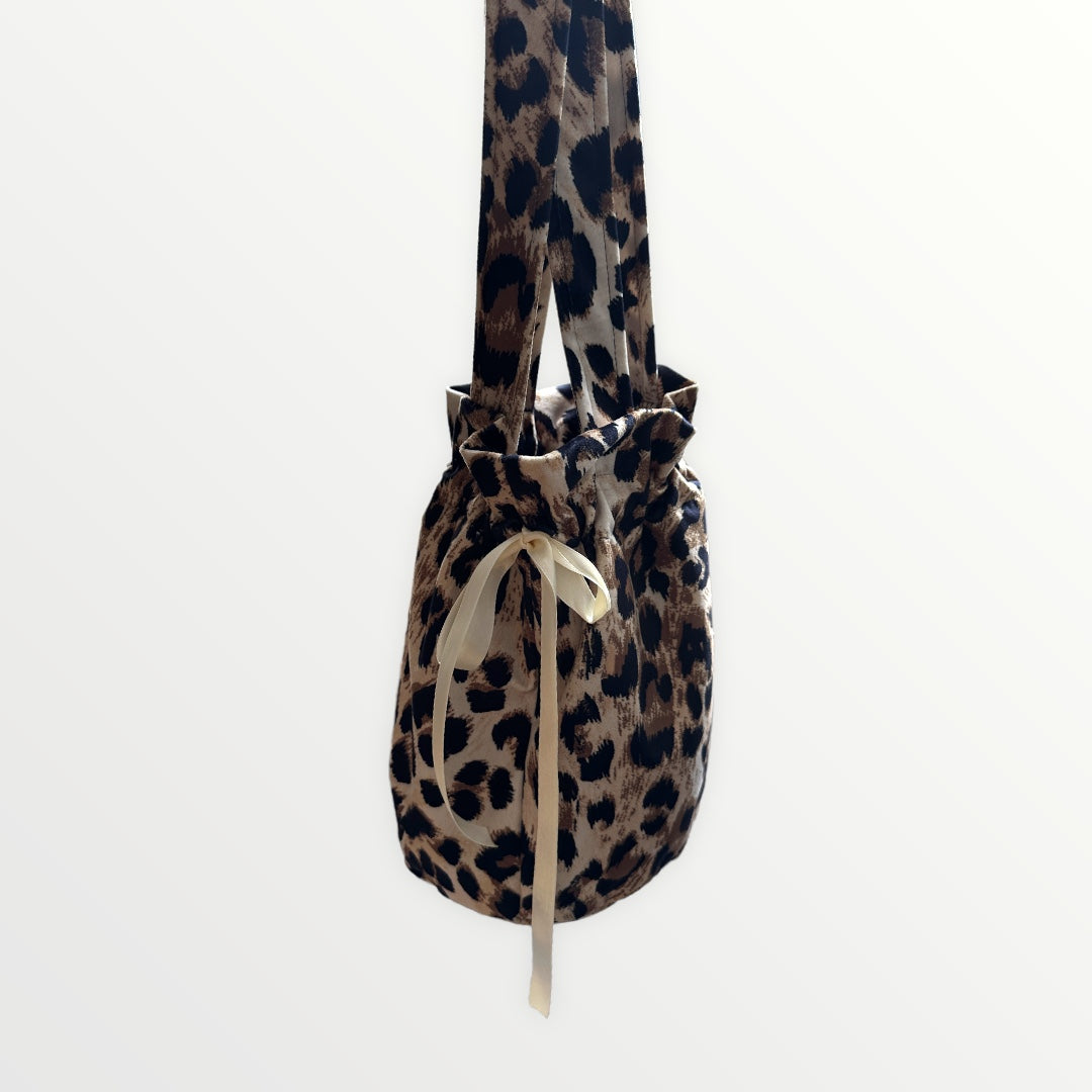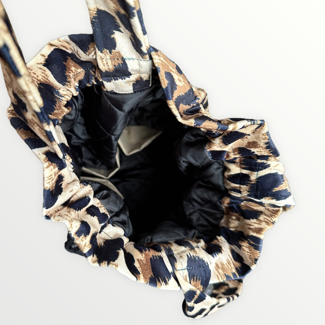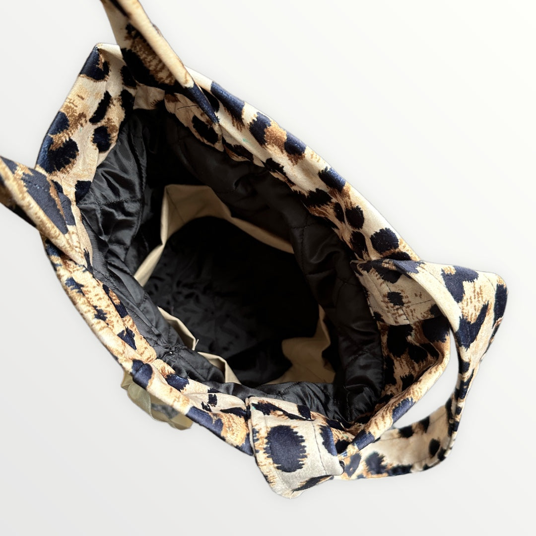 Project bag with outer fabric in velvet with leopard print. The bag has internal pockets so you can keep small things in order.