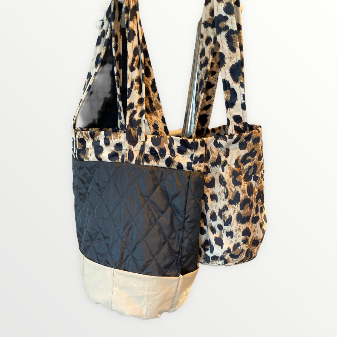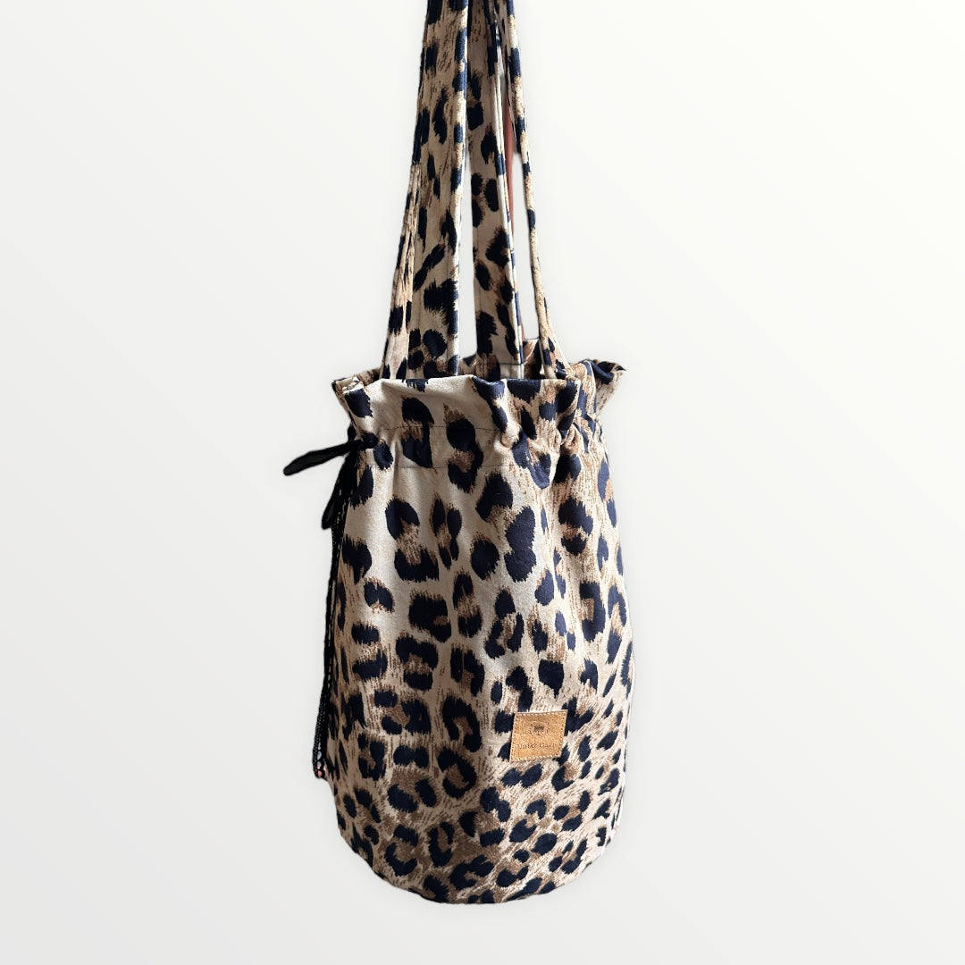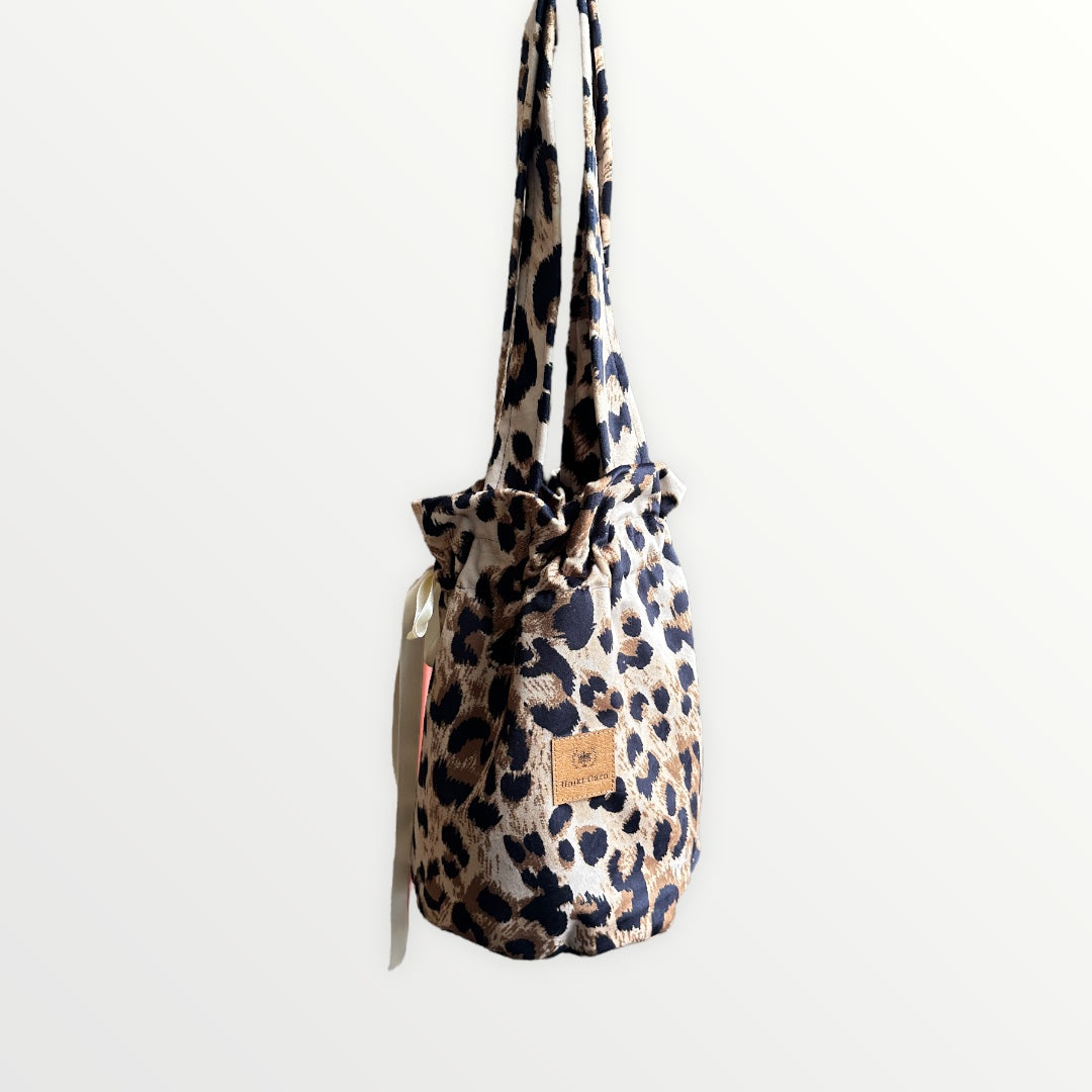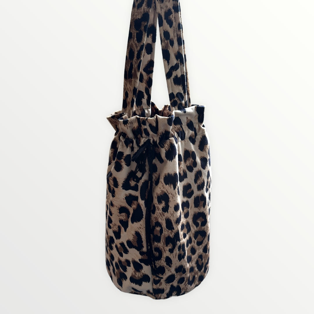 Project bag with outer fabric in velvet with leopard print. The bag has internal pockets so you can keep small things in order.