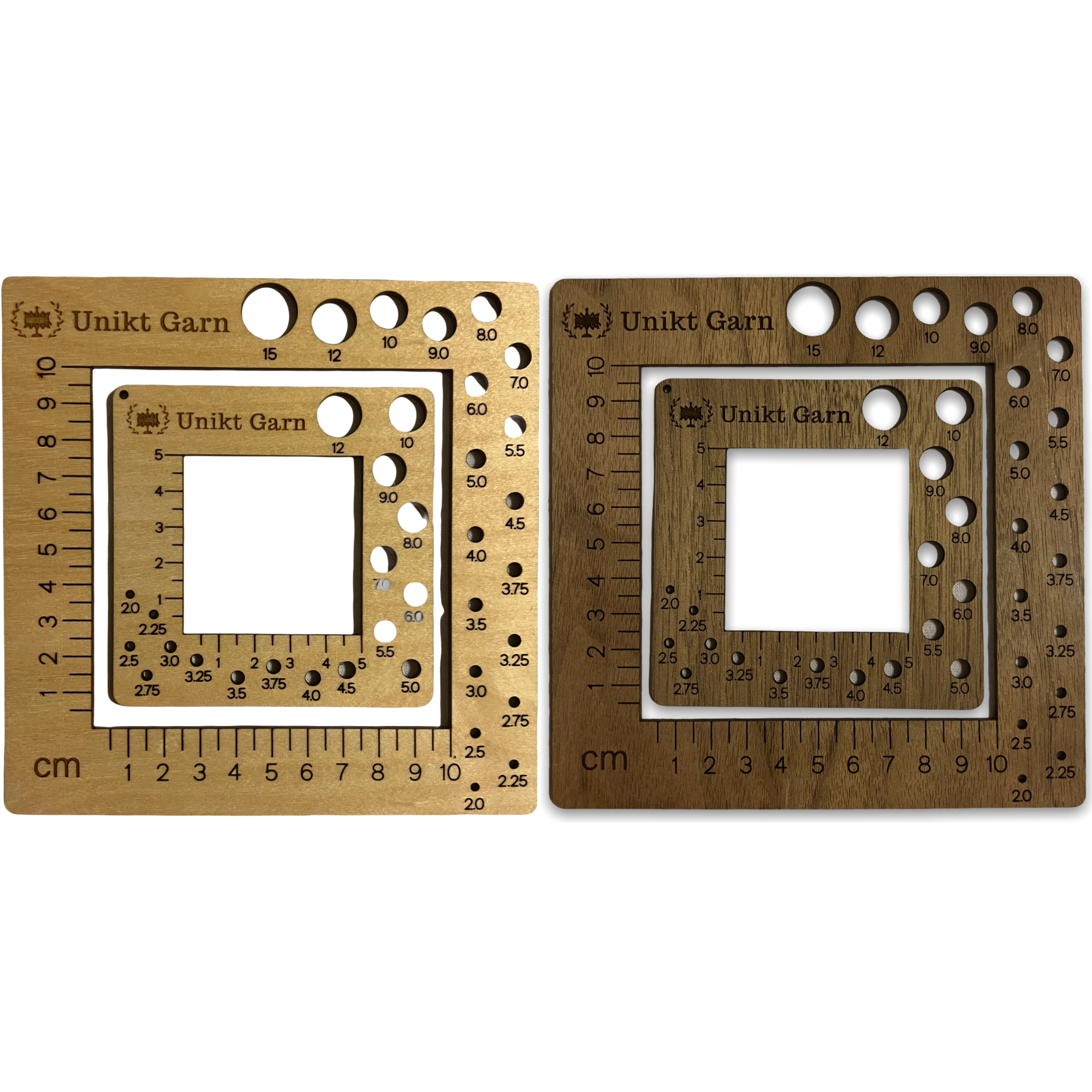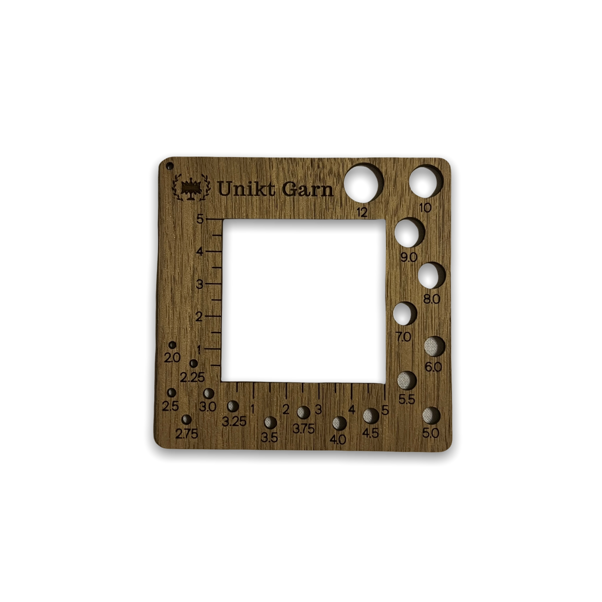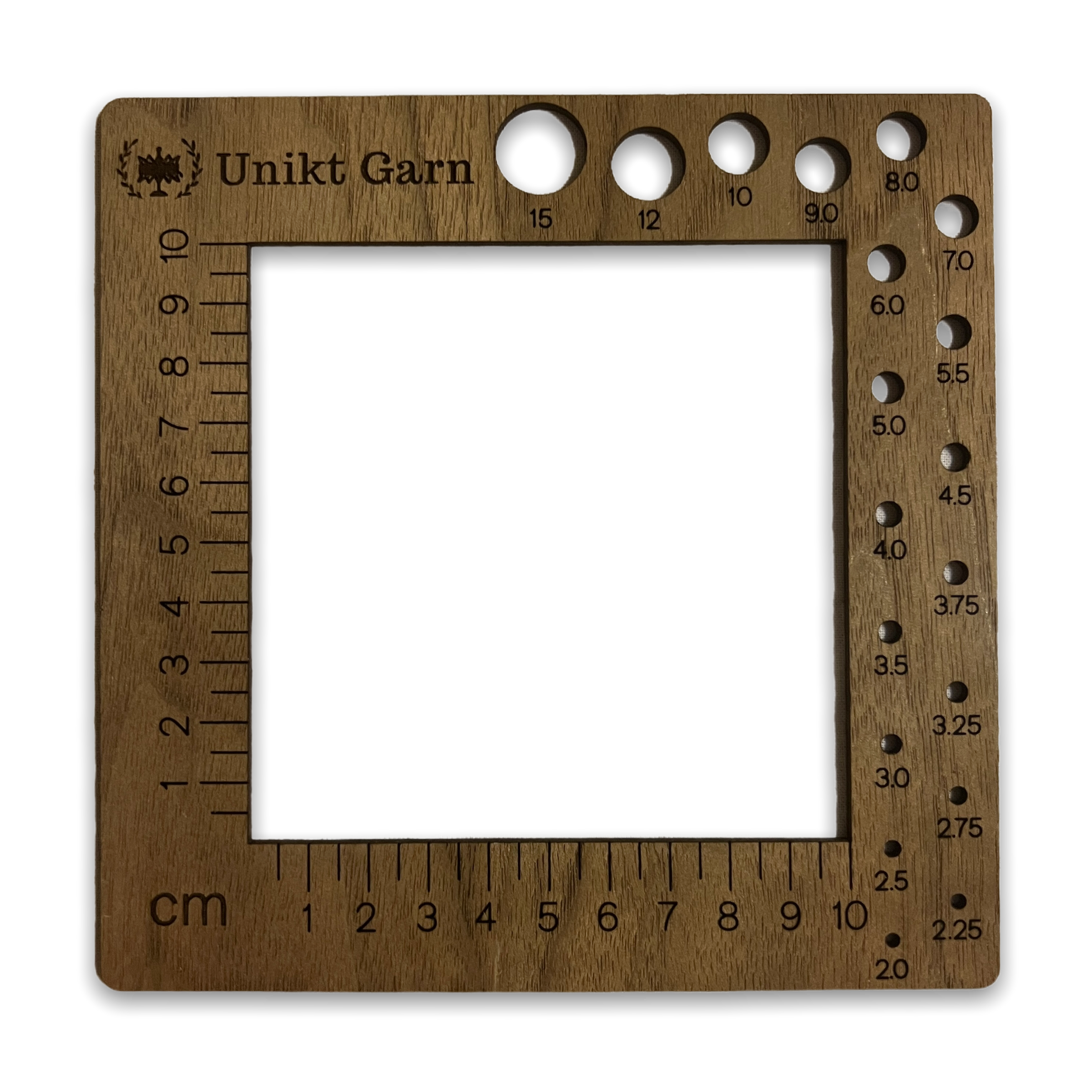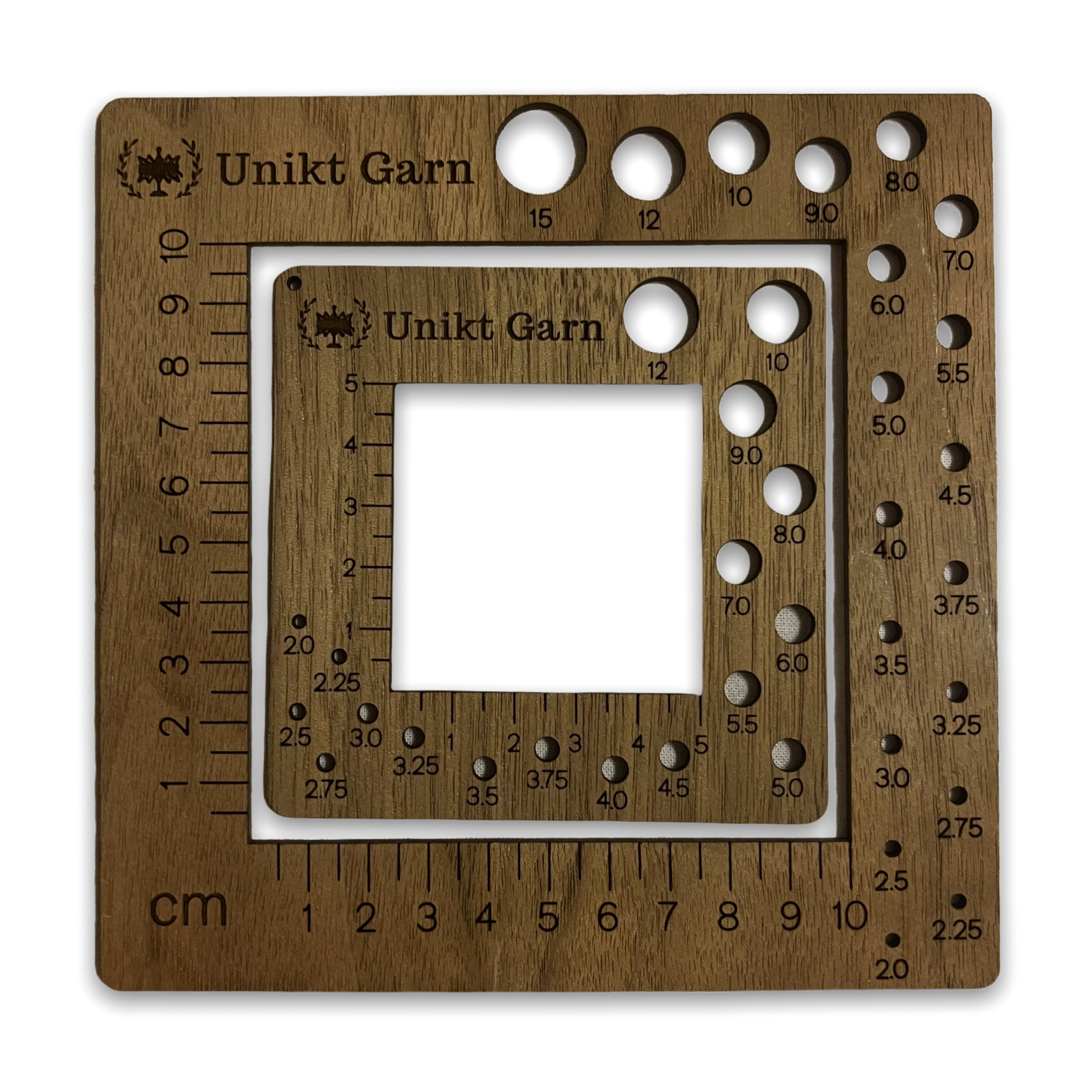 Ruler that makes it easy to measure gauge, both in width and height. Correct gauge is crucial for the garment to end up in the right size. Needle size from 2 mm to 12 mm (5 cm)/2 mm to 15 mm (10 cm).