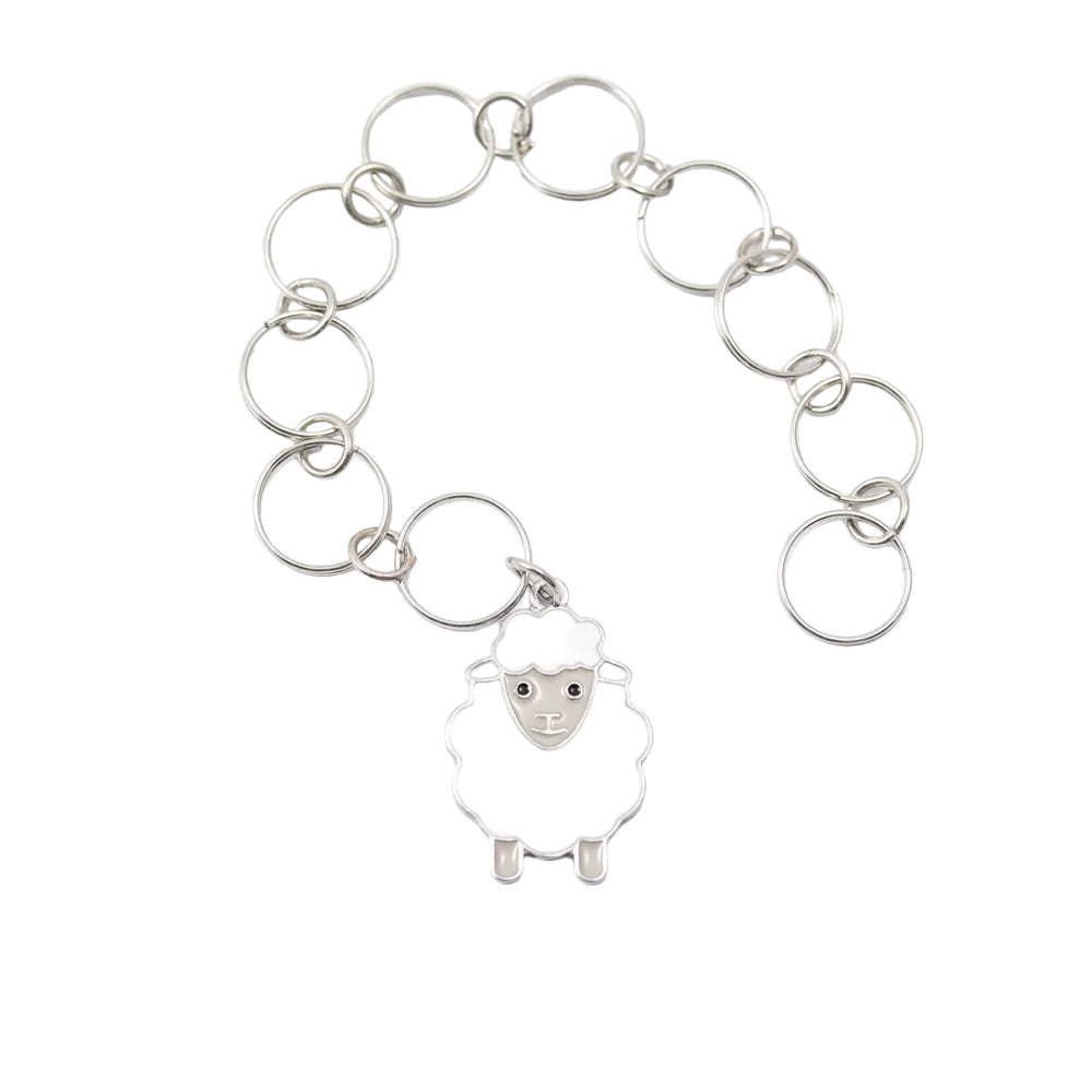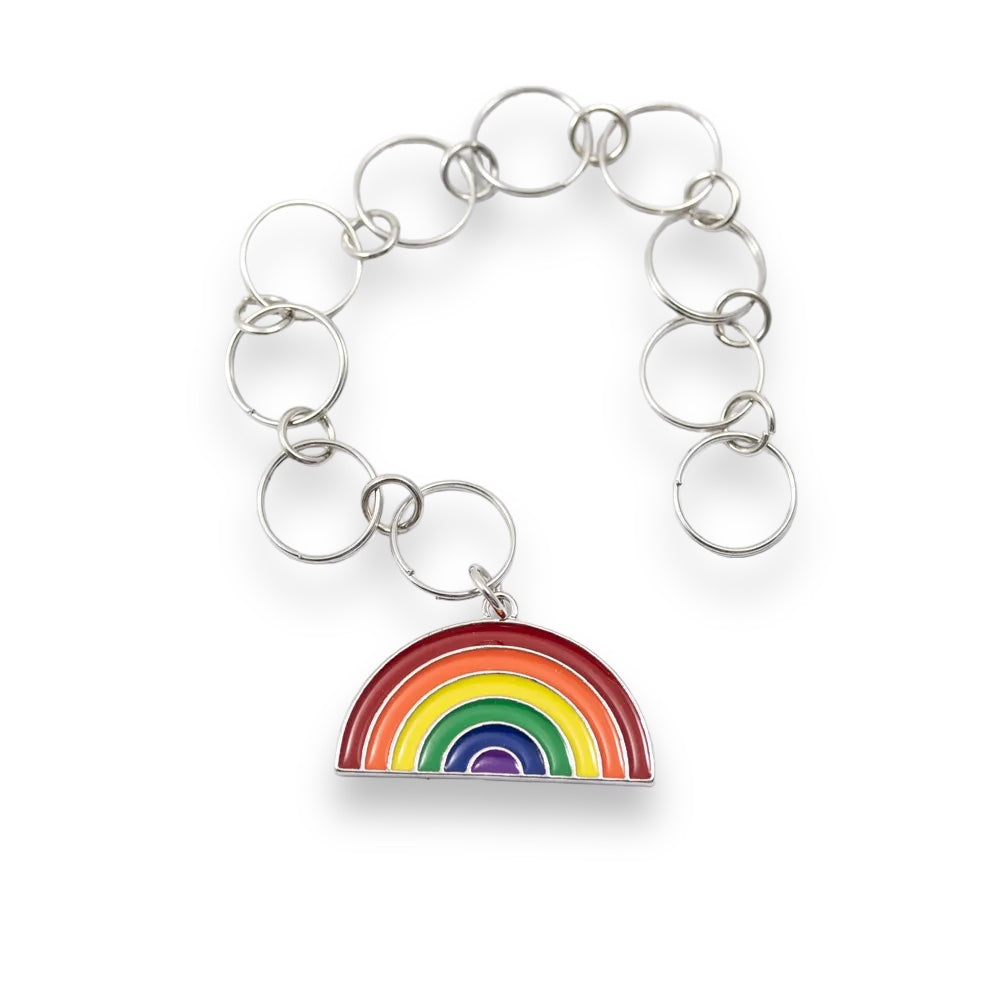 Knitting fish/counting chain that makes it easy to keep track of rounds, increase and decrease. Put it on the needle when you start counting rounds, and move it one ring for each round. It has 10 rings that fit up to needles 7 mm. Knitting fish, round counter, counting chain.