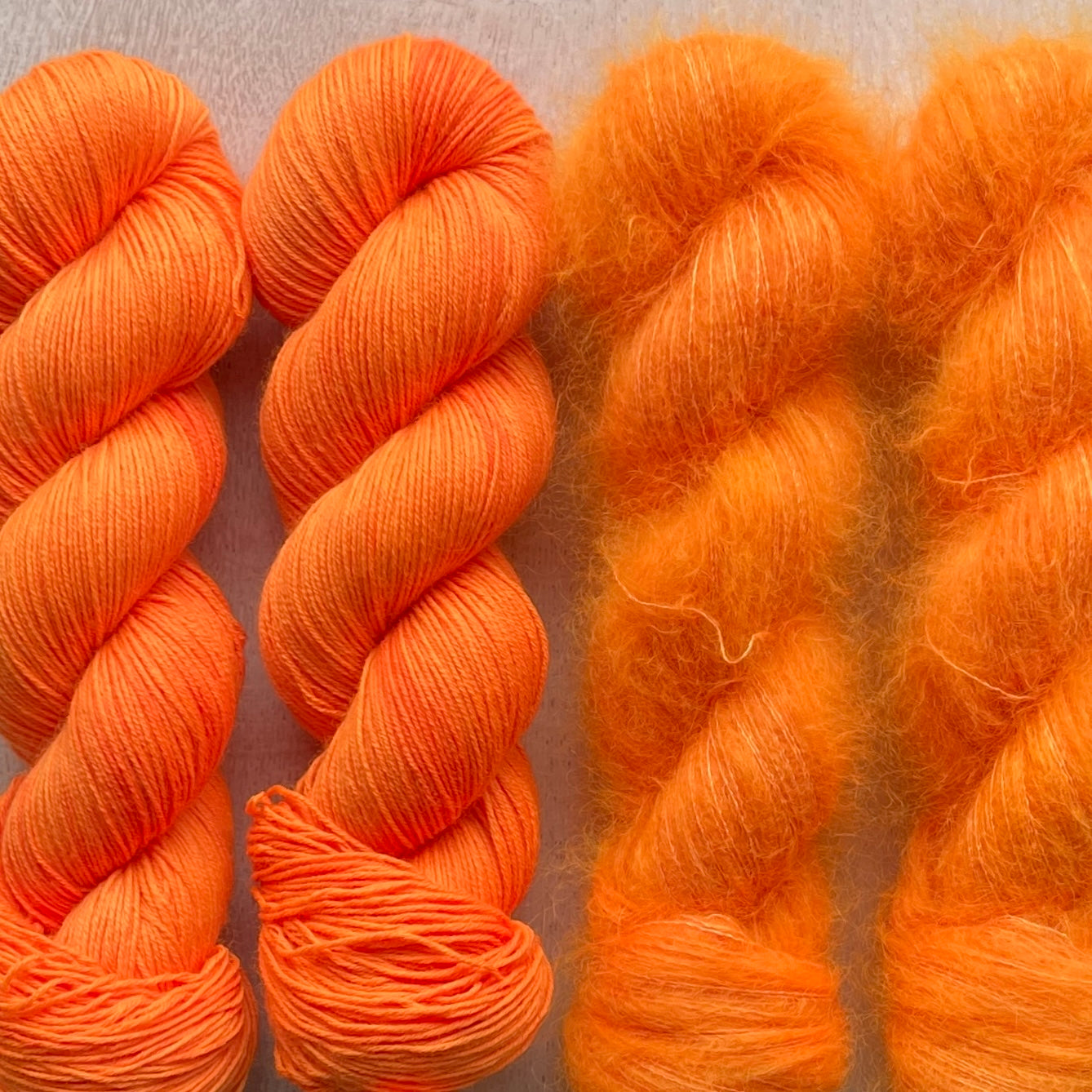 Hand-dyed yarn in neon orange.