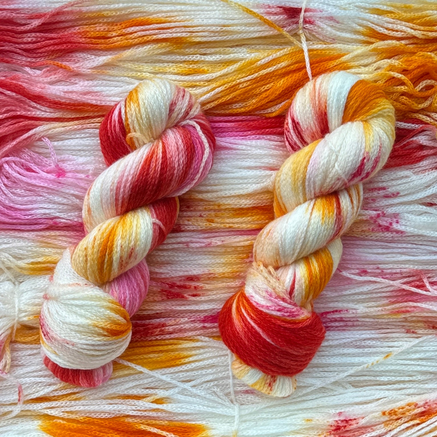 Hand-dyed yarn in deliciously soft chainette merino wool.