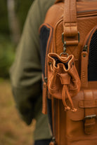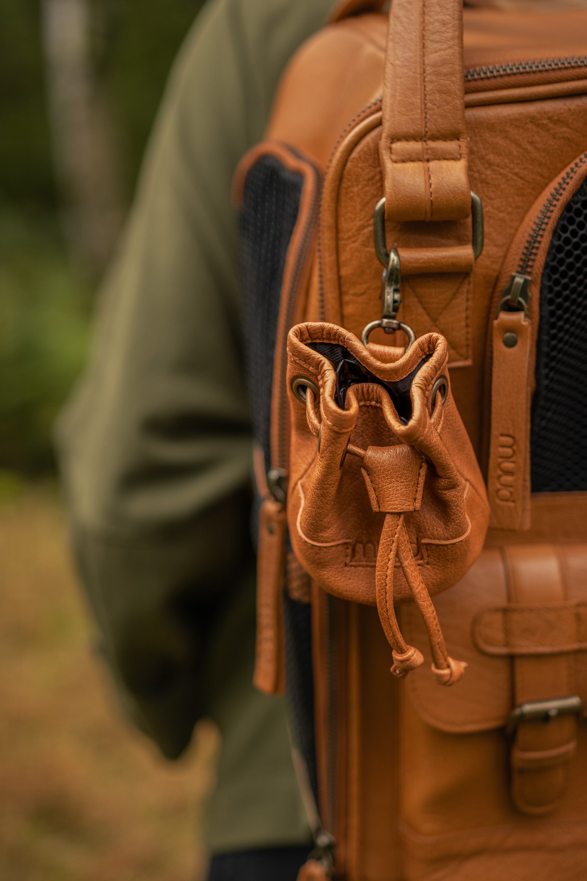 Casey is a small leather bag with an important purpose. You can use our Casey bag to store your pet's treats or other small items you need on the go. The Casey bag closes with a drawstring, making it incredibly easy to just reach down and grab your pet's treats.
