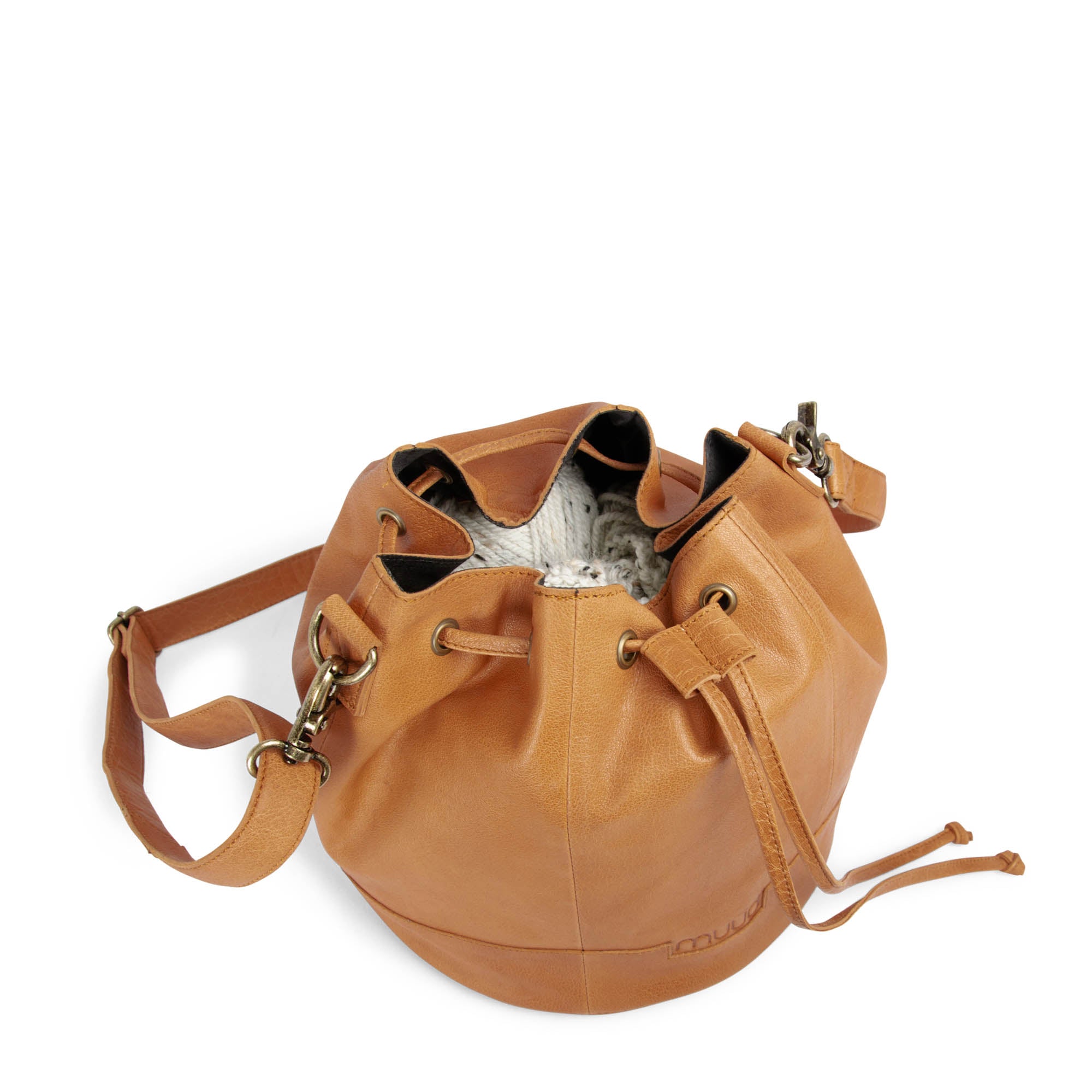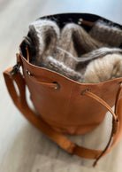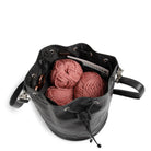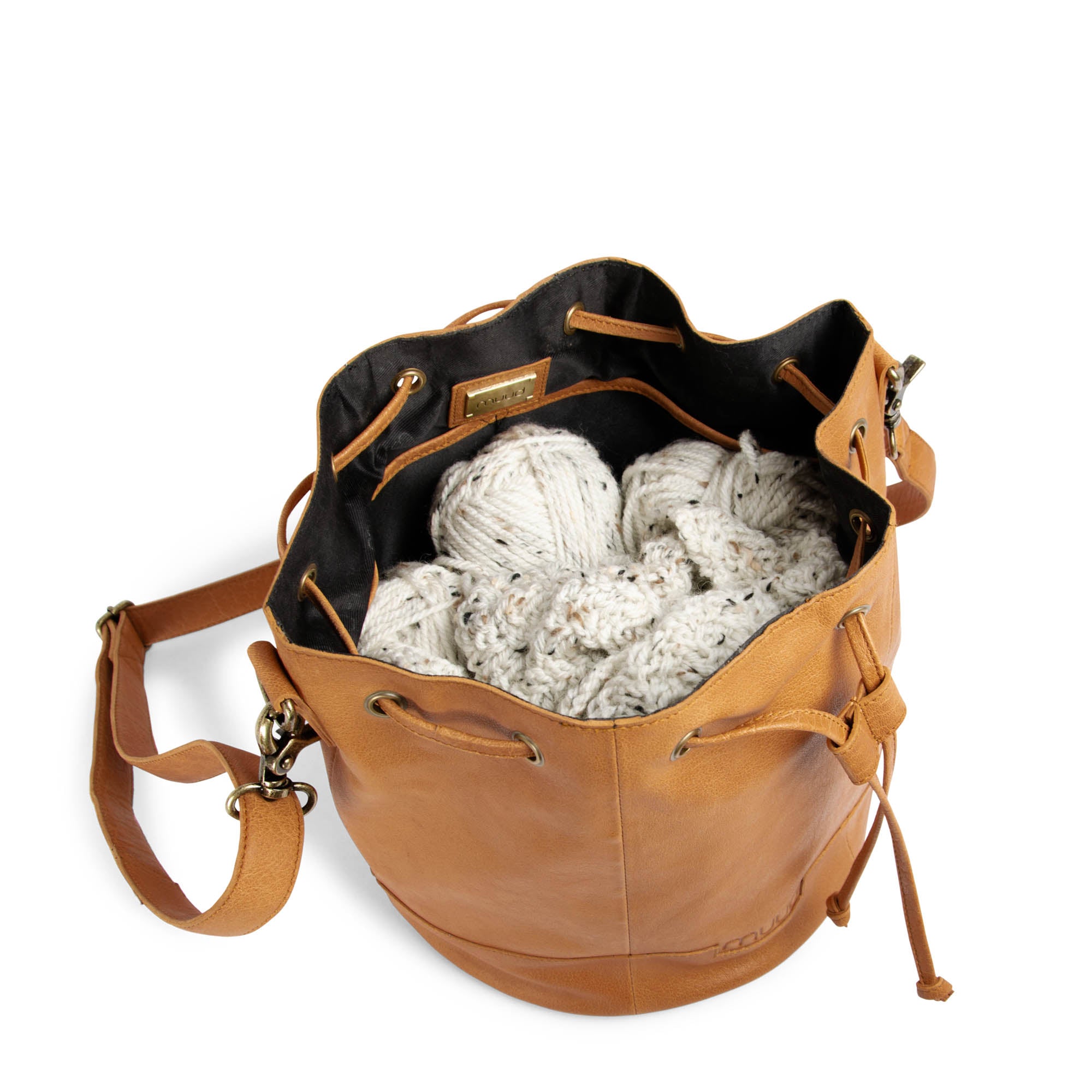 Dina is a beautiful drawstring bag from muud. The bag is made from genuine leather and is the perfect accessory for anyone looking for a smaller on-the-go project bag for knitting and crochet projects. The Dina bag is the perfect storage solution for smaller projects, yarn, knitting needles, and crochet hooks.