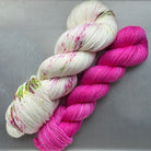 Handdyed sock kit consisting of one skein of 100 g and one skein of 50 g. The small skein is intended for the edge, heel and toe, while the rest is knitted with the large one. In any case, this is enough for a pair of socks up to size 46. This yarn is called luxury sock yarn, and is both very soft and durable.