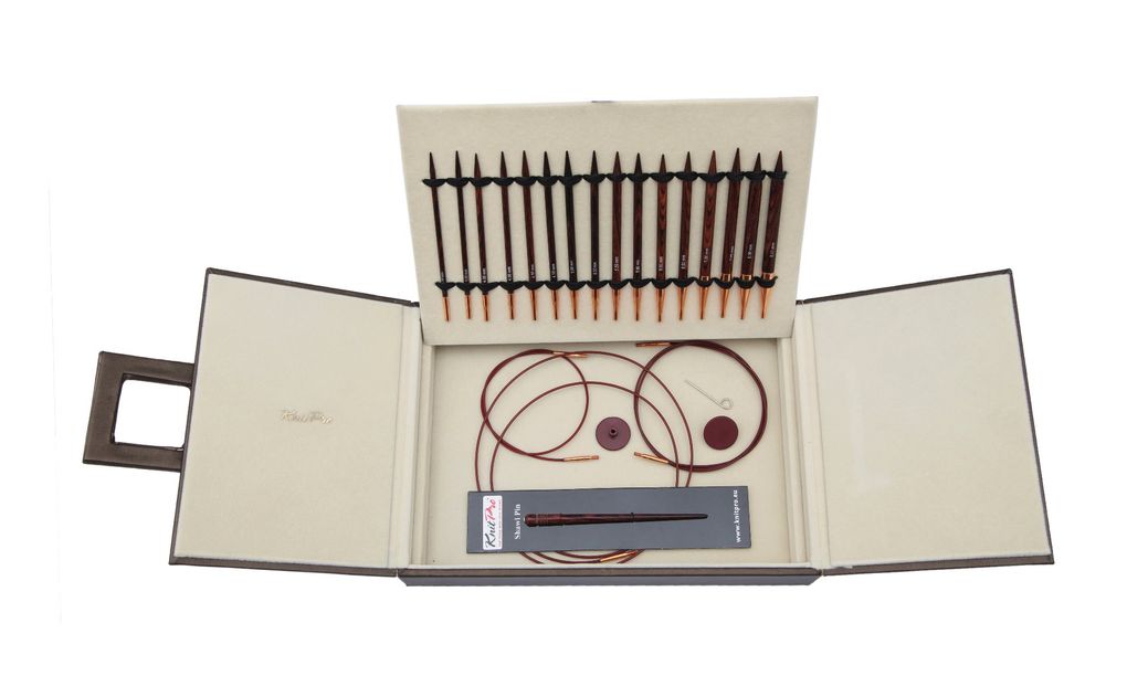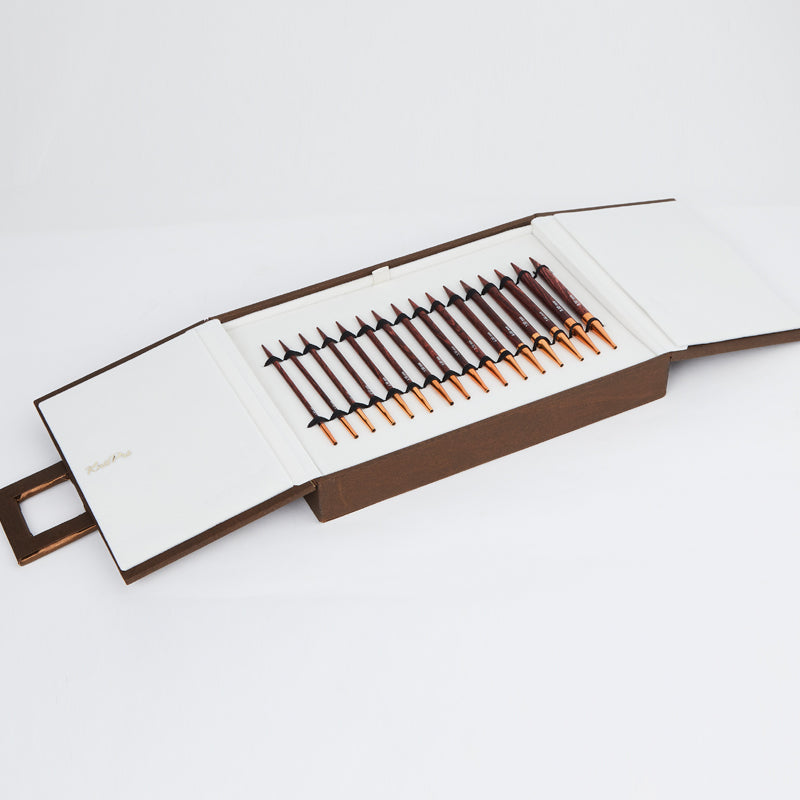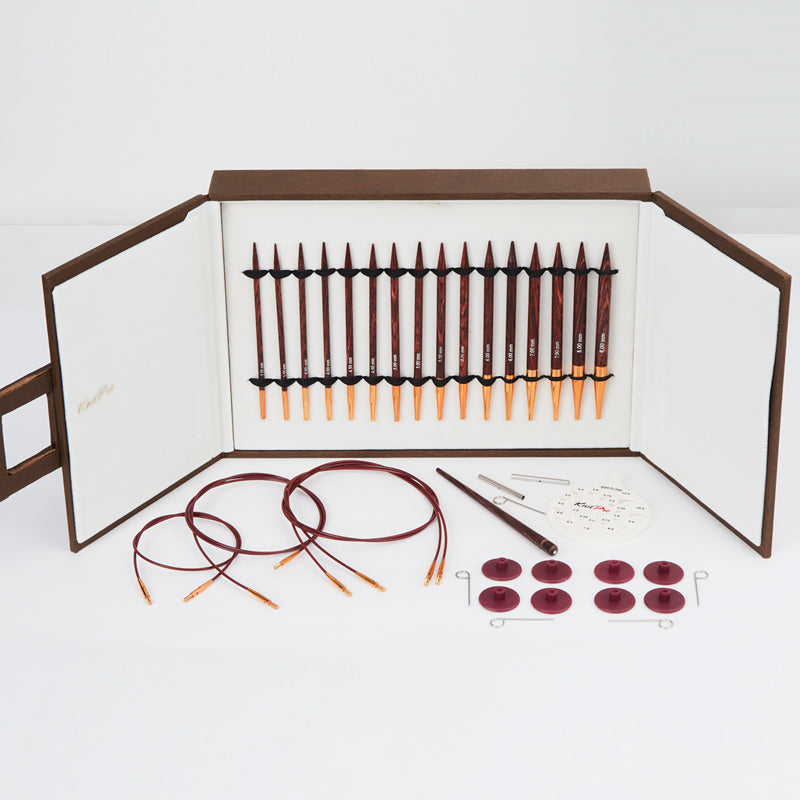 Set of 8 sizes of Symfonie Rose Interchangeable Circular Needles packed in an attractive leatherette box in sizes 3,5 mm - 4 mm - 4,5 mm - 5 mm - 5,5 mm - 6 mm - 7 mm - 8 mm.