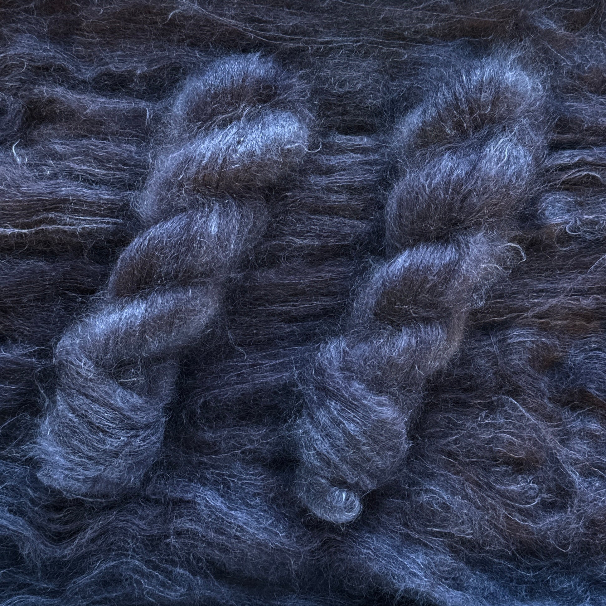 Hand-dyed yarn in wonderfully soft mohair silk combination.