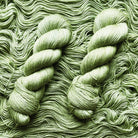 Handdyed yarn in a beautiful light moss green. The yarn can be knit in combination with other yarn types.
