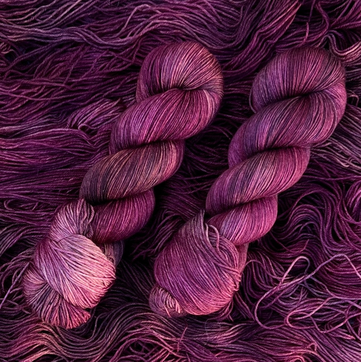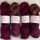 Handdyed yarn in deep burgundy tones. These can be combined with a thread of thin mohair/silk Deep burgundy .