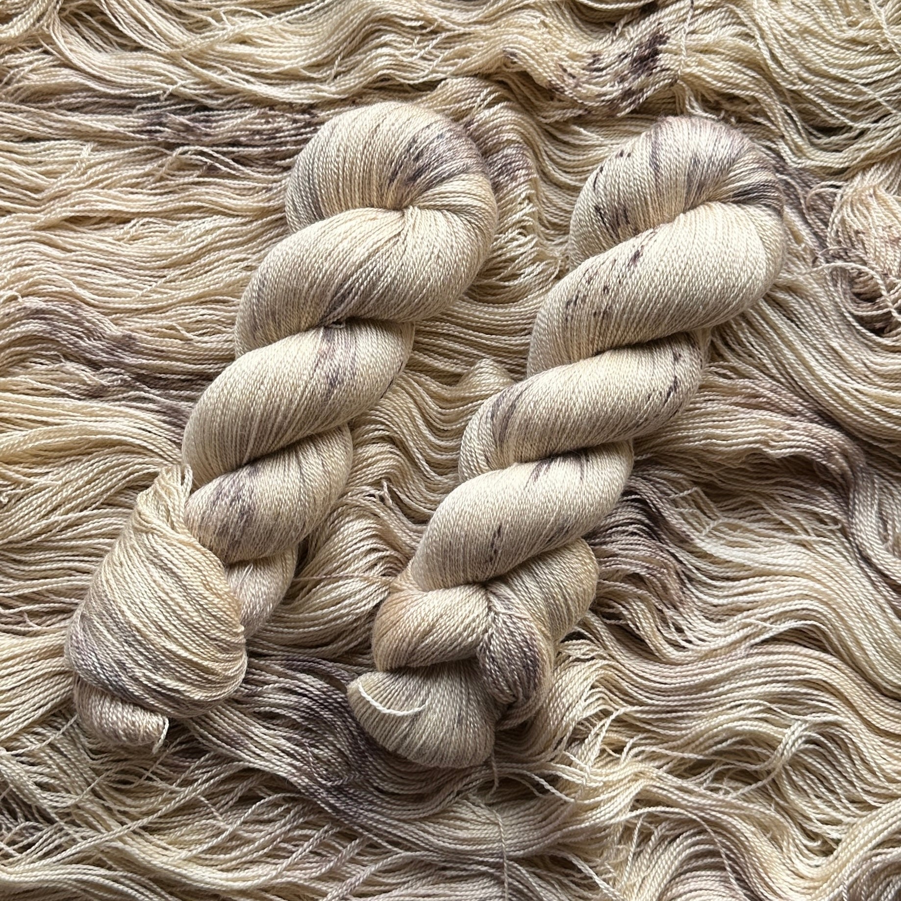 "Café Latte" is a colorway with a subtile beige base and speckles in brown nuances.