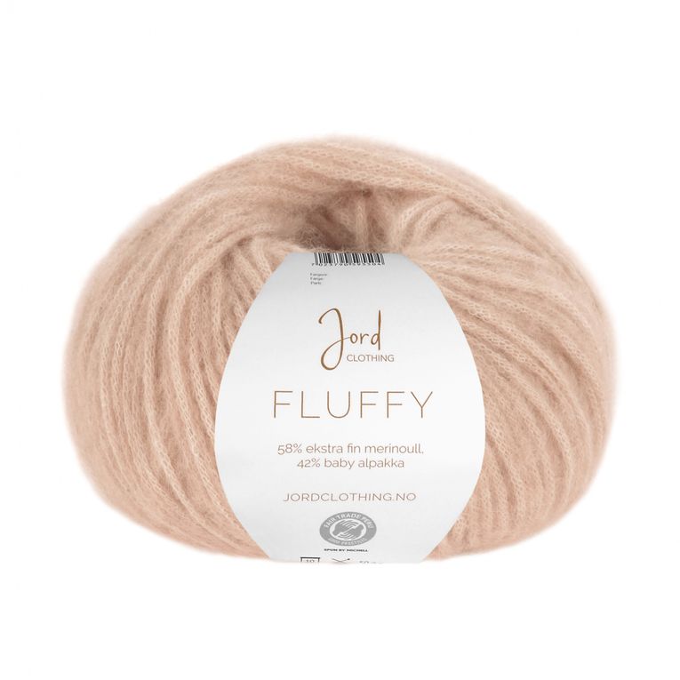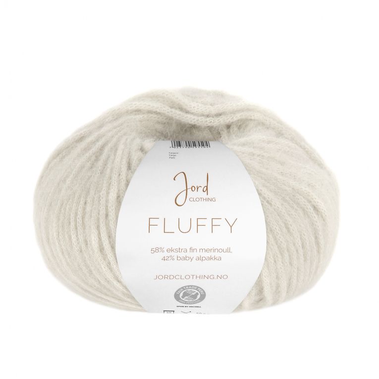 Fluffy from Jord Clothing is a new quality blow yarn in a unique, soft fiber combination. The softest baby alpaca has a core of the finest merino wool. It produces a super airy, fluffy and light yarn that is well suited for sweaters, jackets and accessories for both children and adults.