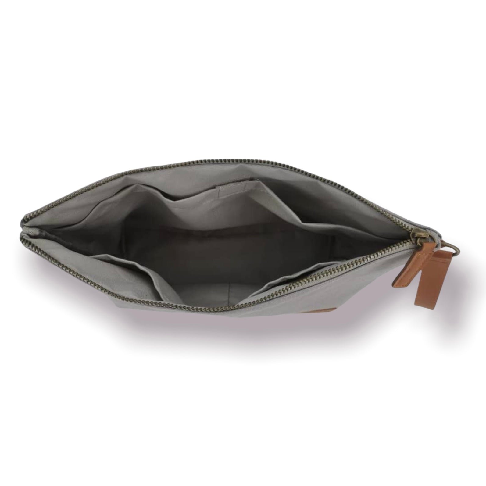 The lining is the same color as the outside, and the zipper has a small leather patch that makes it easier to open the bag. There is also a handle on the side in the same type of leather.