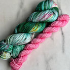 Handdyed sock kit consisting of one skein of 100 g and one skein of 20 g. The small skein is intended for the edge, heel and toe, while the rest is knitted with the large one. This yarn is very soft and durable.